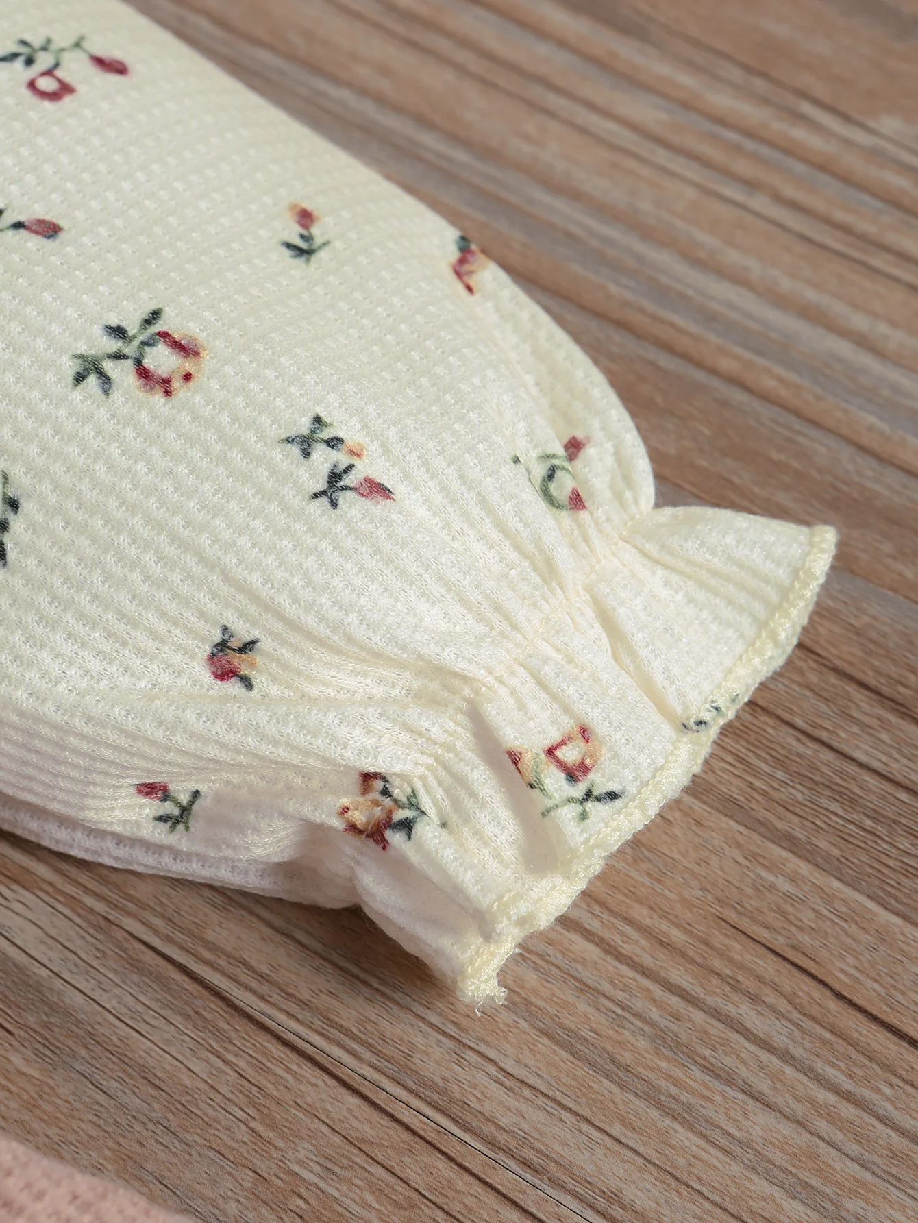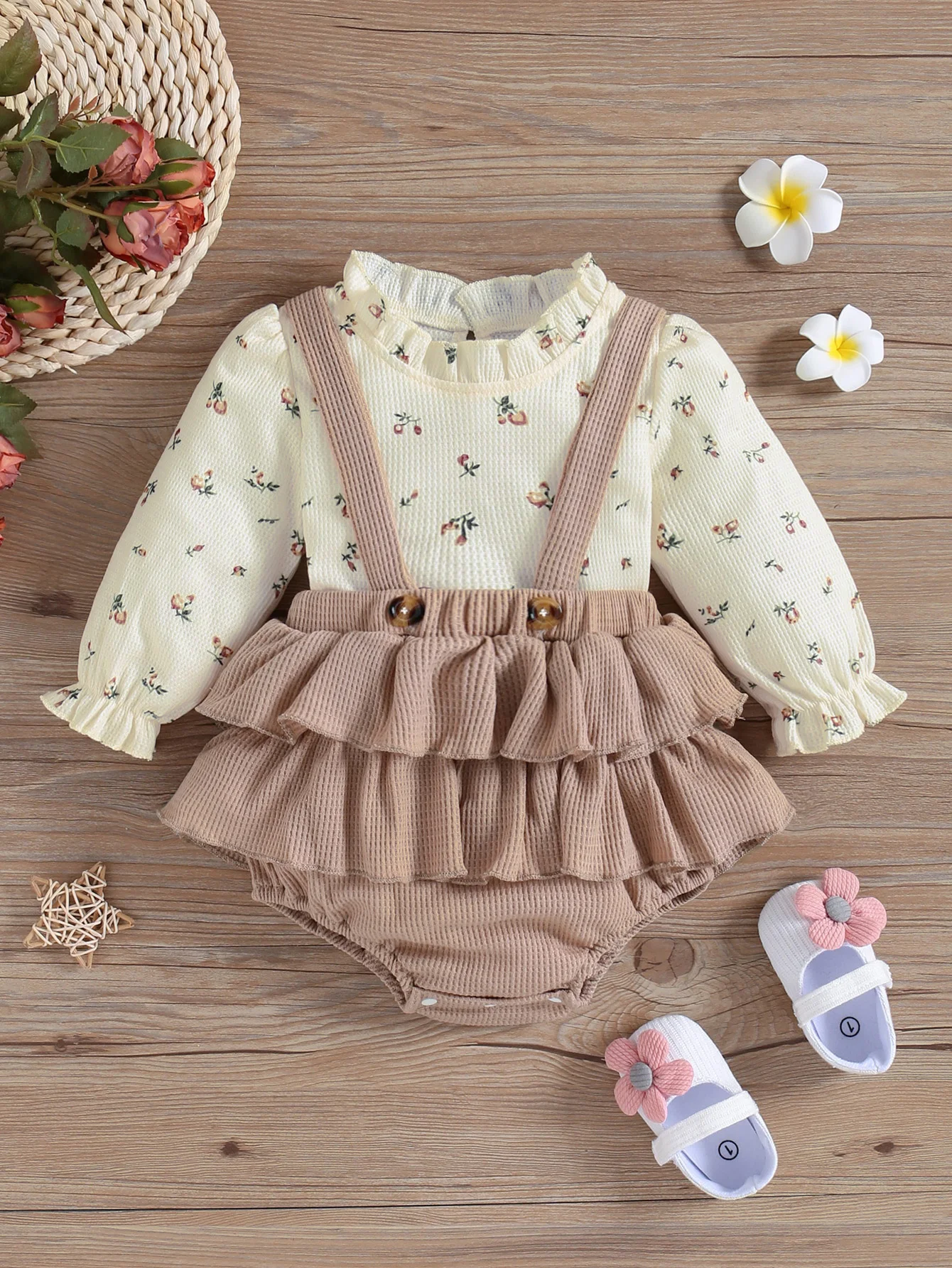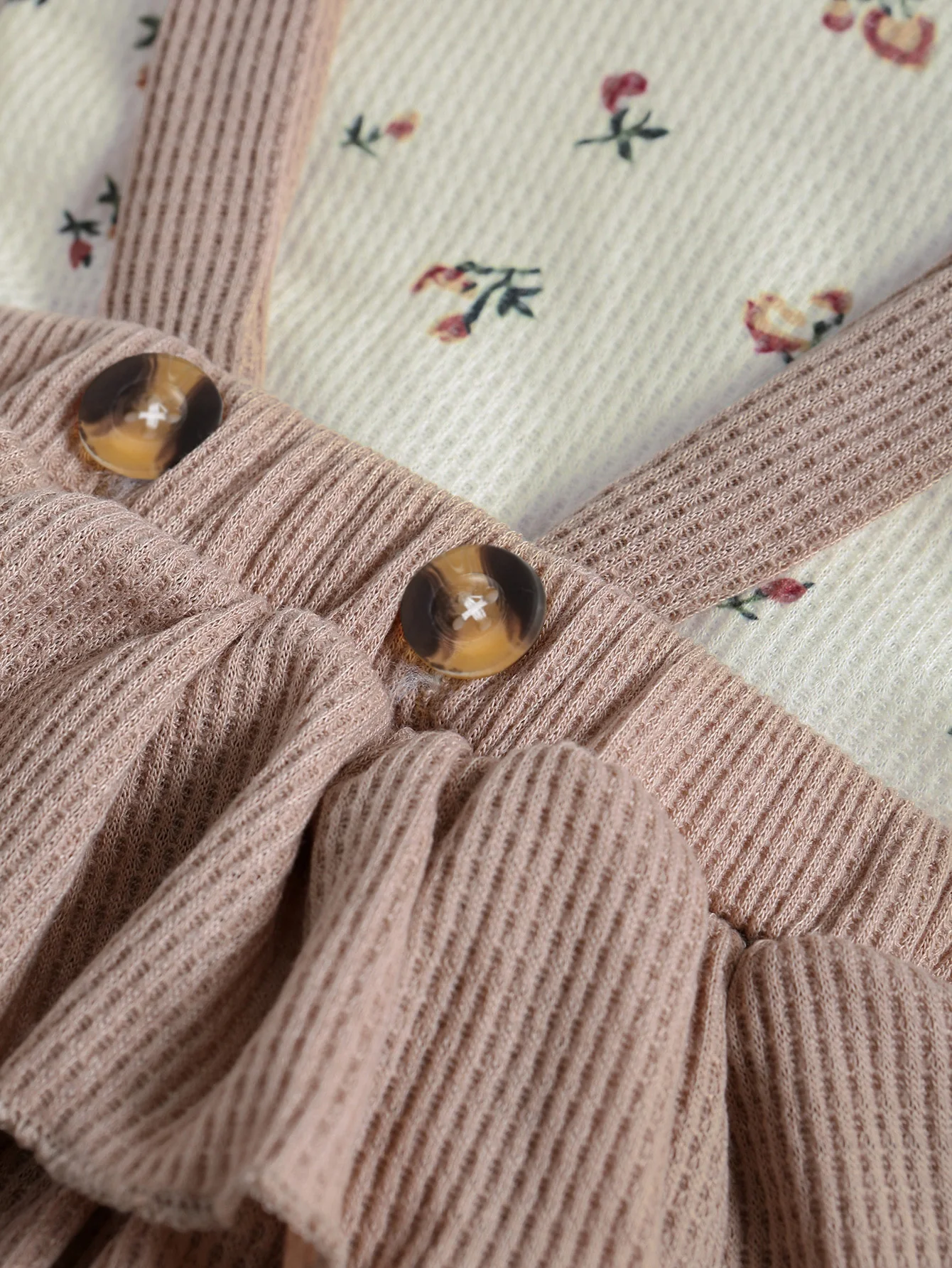 Delicacy and bohemian charm for your little princess! This 2-piece set includes a long-sleeve blouse and suspenders with charming floral print. Perfect for spring and summer, this premium set combines vintage elegance with modern comfort. Your little one will shine in this sophisticated look full of personality!